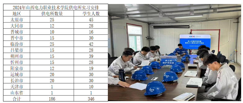 2.打造供電所實習(xí)網(wǎng)絡(luò)。學(xué)院充分發(fā)揮電力行業(yè)辦學(xué)優(yōu)勢,主動爭取省電力公司的政策支持,與西藏公司、朔州公司等重點企業(yè)共建產(chǎn)教融合實踐基地,構(gòu)建了覆蓋全省200余個基層供電所和國網(wǎng)客服中心(北中心)的實習(xí)基地。學(xué)生在3—4個月的實習(xí)過程中,深入電力生產(chǎn)一線,在設(shè)備巡檢、電力運維、客戶服務(wù)等方面掌握了多項實用技能。2024年累計向系統(tǒng)內(nèi)一線崗位輸送346名實習(xí)生,大幅提升了學(xué)生的實踐動手能力。