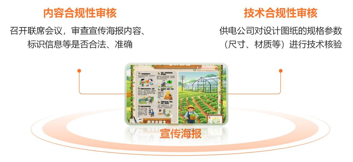 3.防風(fēng)險:逐級合規(guī)審查。建立宣傳海報“雙重審核”機制(如圖7)。召開聯(lián)席會議進行內(nèi)容合規(guī)性審核,確保符合政策及公眾需求;供電公司進行技術(shù)合規(guī)性審核,保障安全性與電力設(shè)施兼容性。