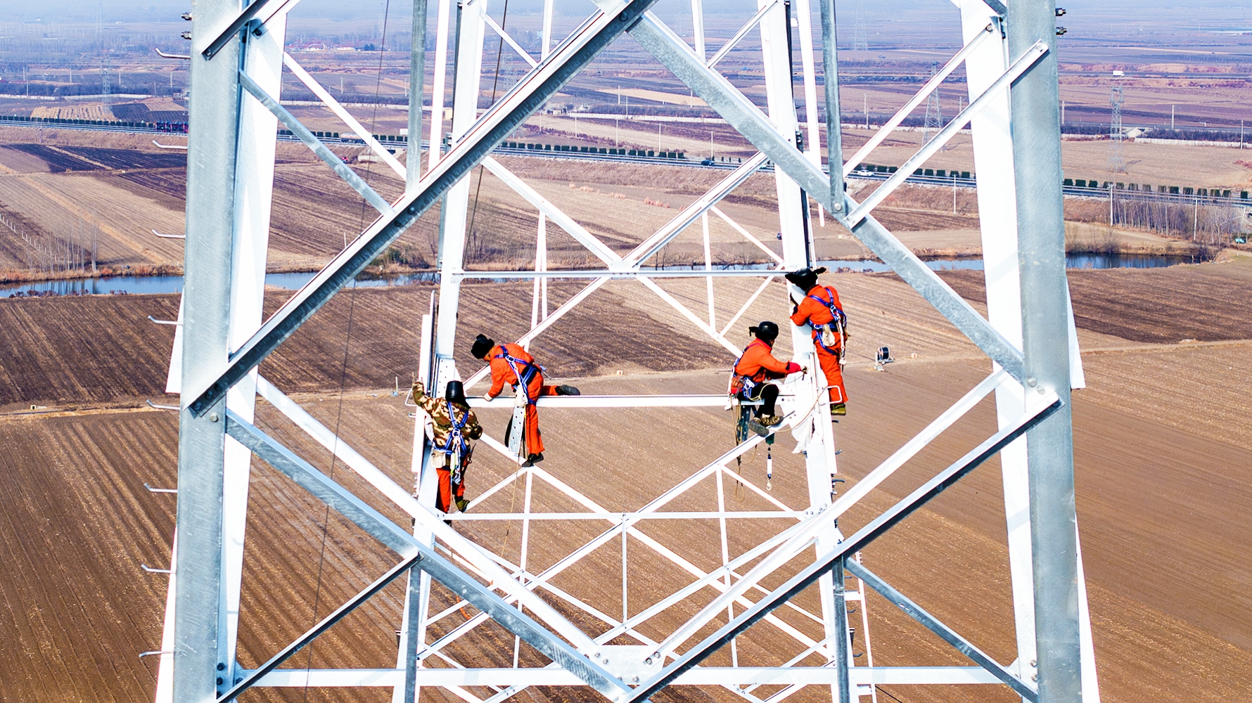2月1日,山東省煙威1000千伏特高壓交流輸變電工程4標(biāo)段流動(dòng)式起重機(jī)組塔作業(yè)現(xiàn)場(chǎng),國(guó)網(wǎng)山西送變電公司施工人員正在進(jìn)行曲臂就位作業(yè)。